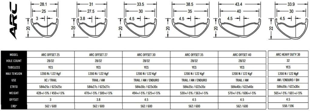 Обод RACE FACE ARC наружной шириной 28,1 мм и глубиной 20 мм. Это обод интересен тем что его можно использовать с бескамерной покрышкой, он совместим бескамерной лентой для обода 27 мм и бескамерным ниппелем. Новый патентованный сплав алюминия, более прочная конструкция, низкий профиль.