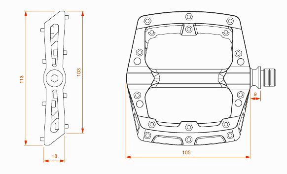 Педали FireEye Skittles чёрные это крепкие и долговечные педали изготовленные из термопластичного композита с десятью сменными шипами с каждой стороны. Ось педалей изготовлена из стали Cr-Mo 4130, которая при использовании металл-полимерных втулок DU посажена на качественные промышленные подшипники закрытого типа. Форма педалей очень удобна, благодаря своему размеру 113 x 105 мм, имеет прочный и удобный упор для обуви с которой не соскальзывает нога при не стандартных ситуациях.