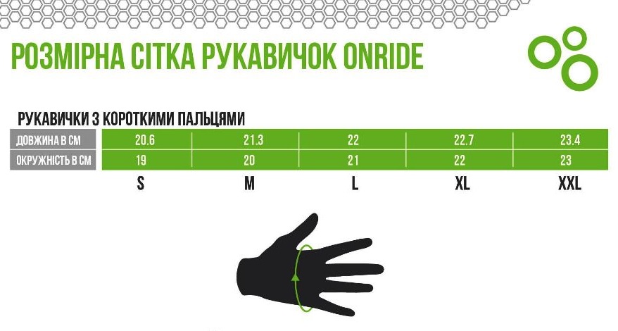 Таблиця розмірів рукавичок Onride